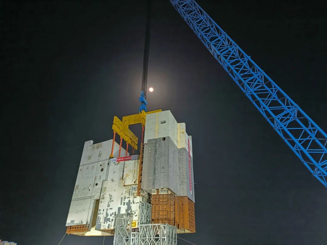 2023年1月8日0时52分,中核机械工程参与完成三门核电二期3号核岛CA01模块的吊装工作,吊装用时5时6分,此模块重约835.2吨、长28.928米、宽28.534米、高23.469米,吊装总重量达1046.2吨!本次吊装设备重量大,体积大,项目部严格把控安全技术交底工作,确保交底内容落实到人。开展吊装前大吊车专项检查,确保大吊车工作状态良好。严格控制起吊风速在6.5m/s以内,实时跟踪风速,气象站数据与现场实测数据相结合,动态分析灵活预测吊装风速。