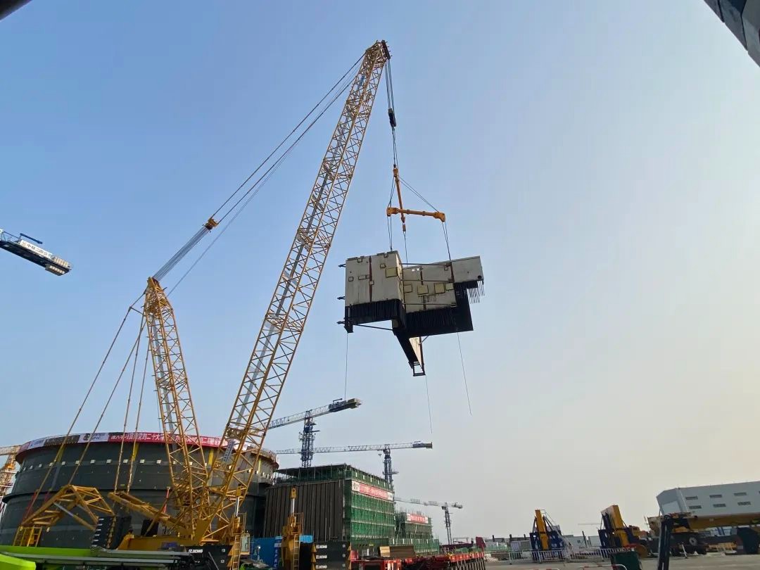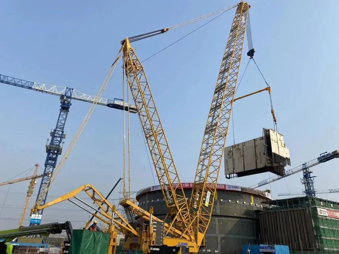 2023年1月8日,中核机械工程同日内先后完成三门核电3号机组CA01模块、海阳核电二期3号机组CA05模块、大连恒力石化新材料项目硝酸吸收塔吊装,展示出了行业内少见的资源配置和人员专业化能力。作为工程吊装行业主力军,公司持续为核工程和民用工程“两个品牌”建设贡献专业化力量。