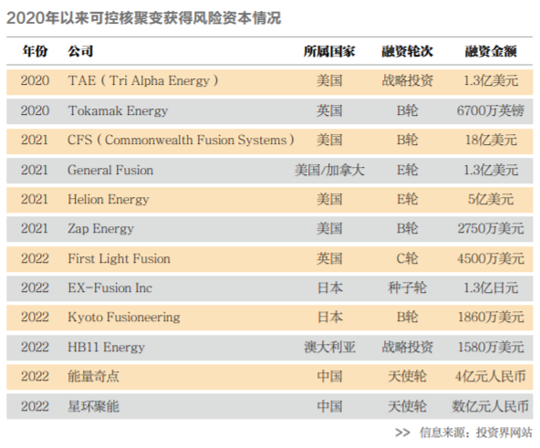 近年来,随着硬科技投资趋势热潮来临,以及业界对新能源的高度重视,一批商业资本、风险投资开始涌入核聚变能源的创业公司。