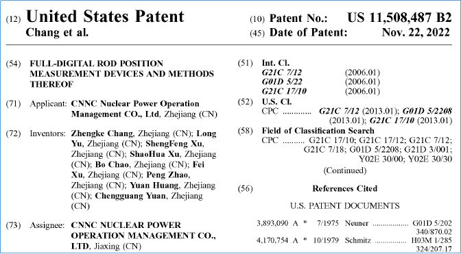 近日,秦山核电发明专利“全数字化棒位测量装置及其方法” (FULL-DIGITAL ROD POSITION MEASUREMENT DEVICES AND METHODS THEREOF)获美国专利授权,实现了中国核电在美专利授权“零的突破”。