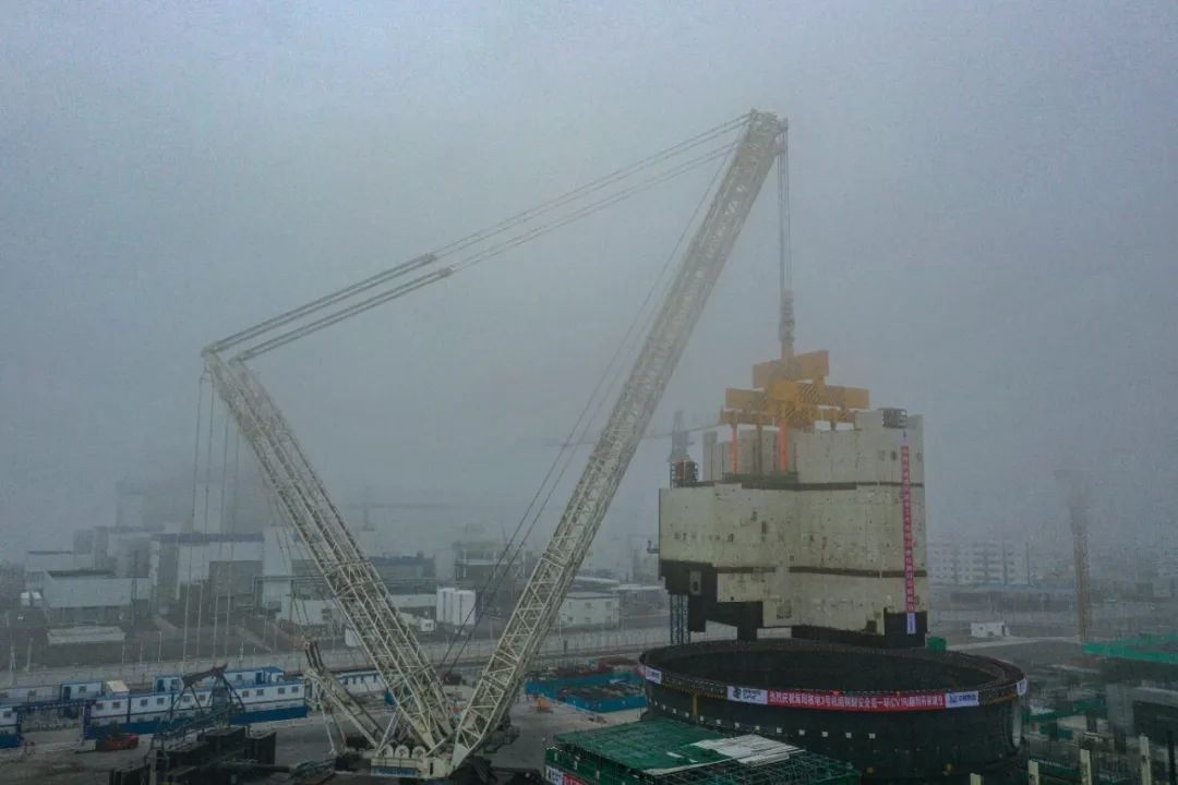 2023年1月12日10时29分,海阳核电3号机组核岛反应堆厂房CA01模块顺利吊装就位。