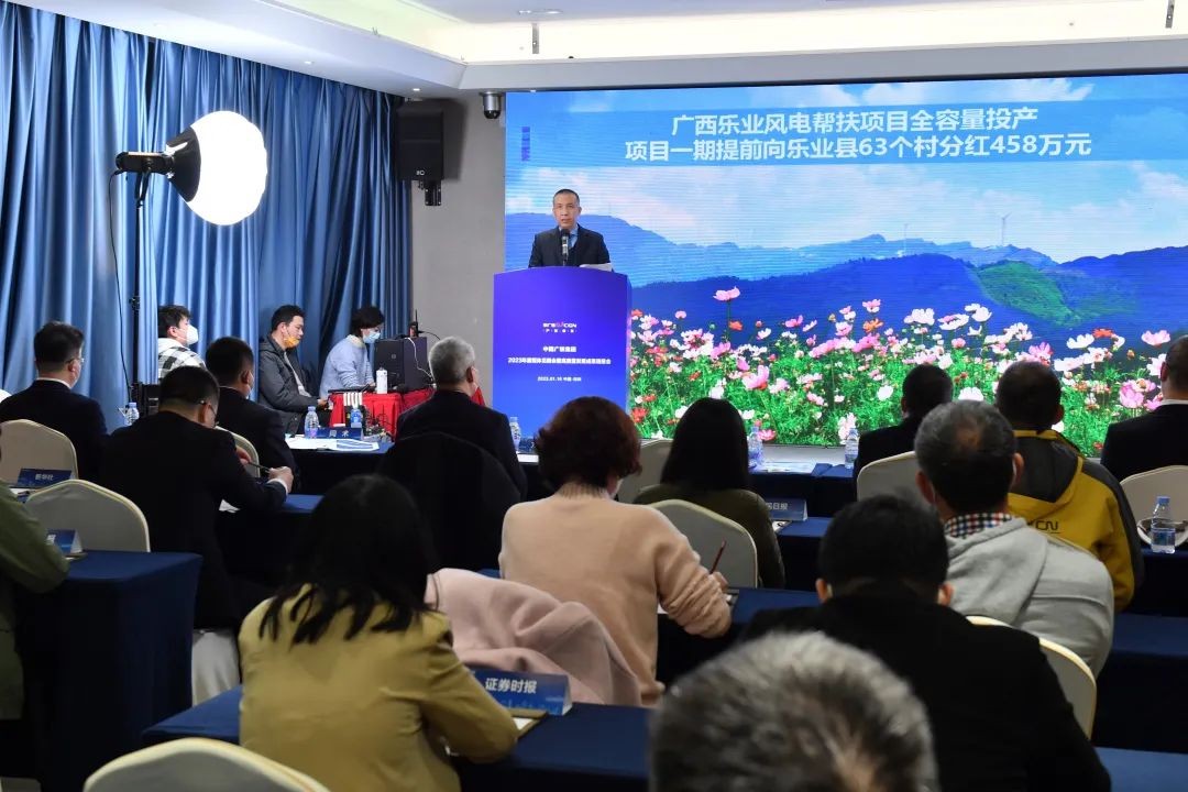 2022年中广核定点向凌云、乐业两县投入无偿帮扶资金3200多万元,实施帮扶项目16个,总结提炼形成“乡村振兴+大基地”的兴安盟模式、“美丽乡村建设+县域风光开发”的乐业模式,广西乐业风电帮扶项目全容量投产,项目一期提前向乐业县63个村分红458万元。