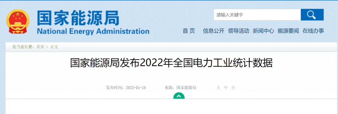 1月16日,国家能源局发布2022年全国电力工业统计数据。