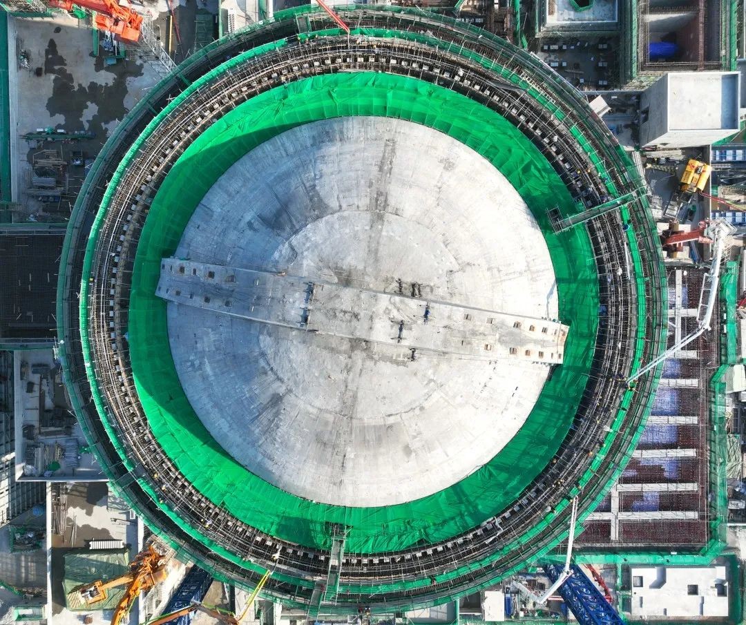 1月19日16时28分,中核二四铁军奋战17小时28分钟,顺利完成华龙一号漳州核电1号机组外层安全壳筒体第十八层混凝土浇筑,标志着外层安全壳筒体施工全部完成。