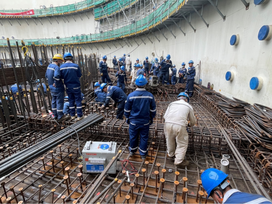 管理人员和生产人员上下一心,充分吸取3号机组零米板施工经验,加强过程管控,科学组织人力,减弱疫情拐点的不利影响,让昌江二期项目上下在新春佳节喜庆的氛围之中圆满完成年后第一个里程碑节点,吹响了2023年建安双高峰进攻的的号角,为随后3号机组主设备通道、内穹顶吊装工作营造了良好的攻坚氛围。