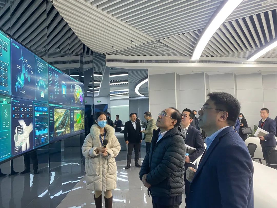 张志武一行在座谈会中听取了上海电气新能源板块发展与规划以及风、光、储能业务发展情况介绍,会后还参观了上海电气风电集团数据中心。