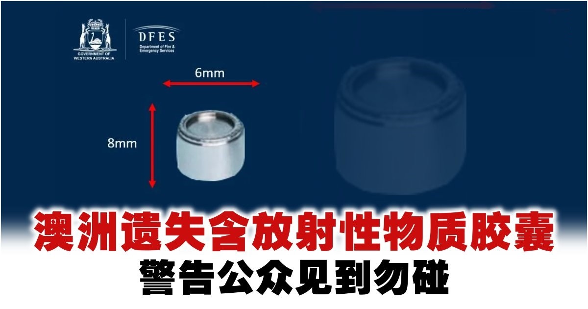 此前消防和紧急服务部门称,这粒装有铯-137的银色小胶囊在从纽曼北部的矿场运往珀斯东北郊区的途中丢失。报道称,这种物质用于采矿作业的仪表内,暴露在这种物质中可能会导致辐射灼伤或辐射疾病。