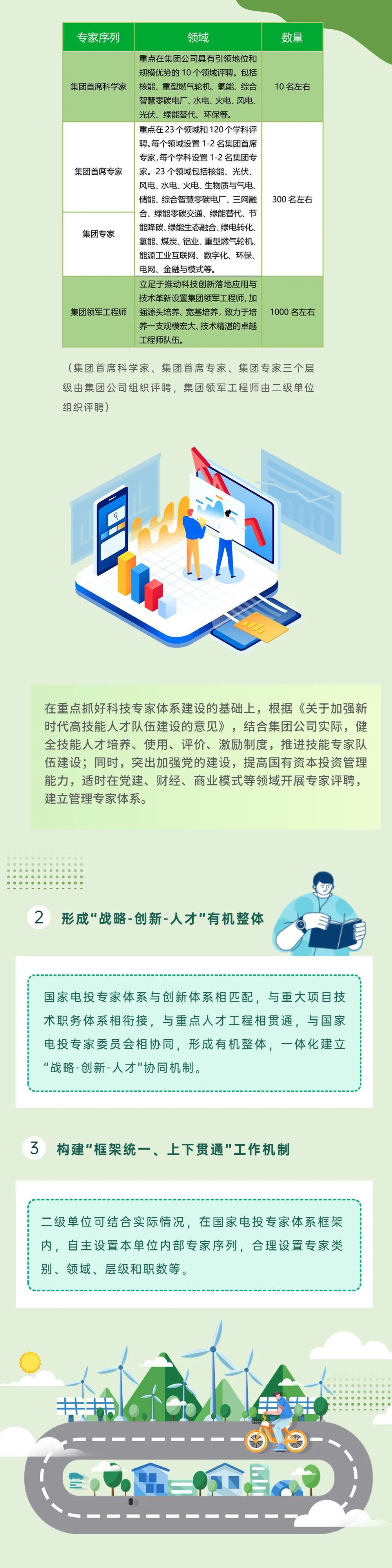 全新的专家体系,为全体国家电投人而打造为鼓励人人成才而建立。目前国家电投已经完成首批集团专家评聘,下一步将推动体系全面落地实施加快培养,造就一大批大师、战略科学家,一流科技创新领军人才、卓越工程师,为国家电投“2035一流战略”落地提供强有力的人才支撑!