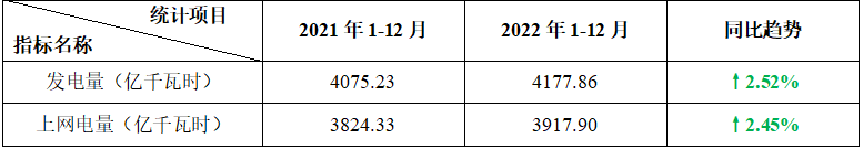 表2:2022年1-12月核电电力生产指标统计表