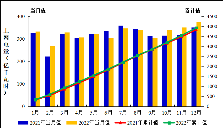 图3:2021年1月至2022年12月全国运行核电机组上网电量趋势