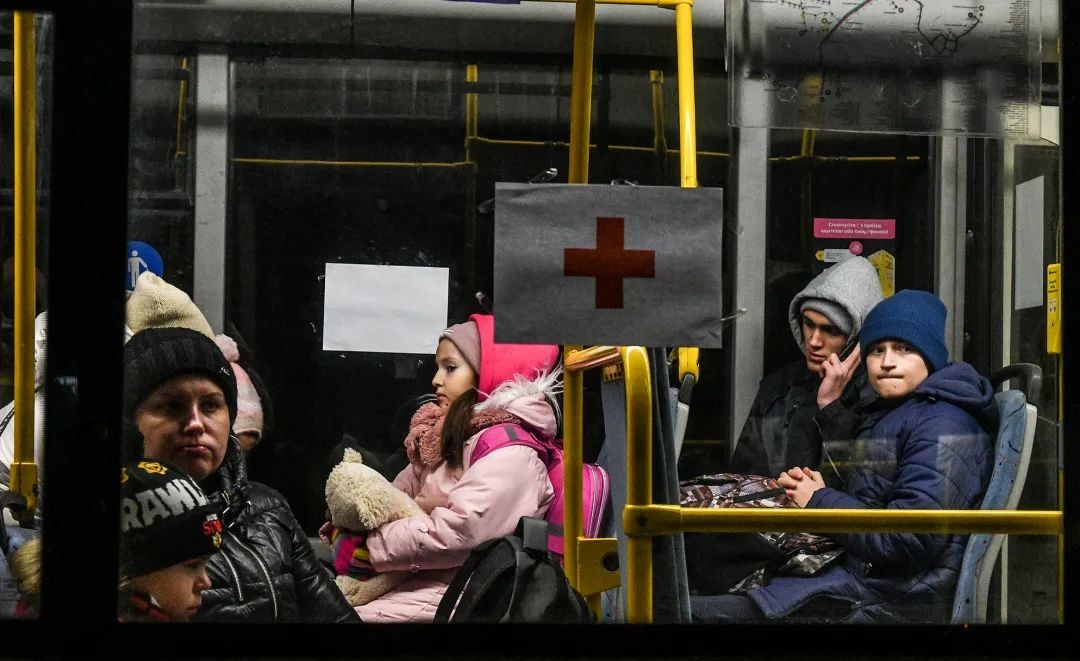 当地时间2022年3月9日,乌克兰民众从扎波罗热核电站所在地撤离。