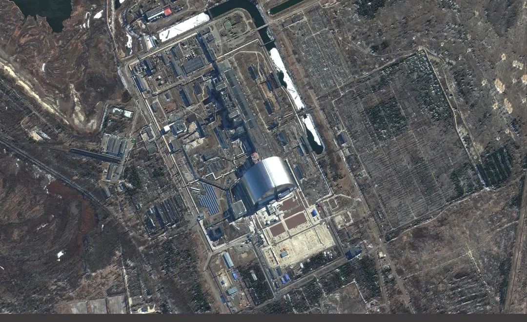 当地时间2022年3月10日,乌克兰普里皮亚季地区,Maxar卫星图像显示出切尔诺贝利核电站的全景图。