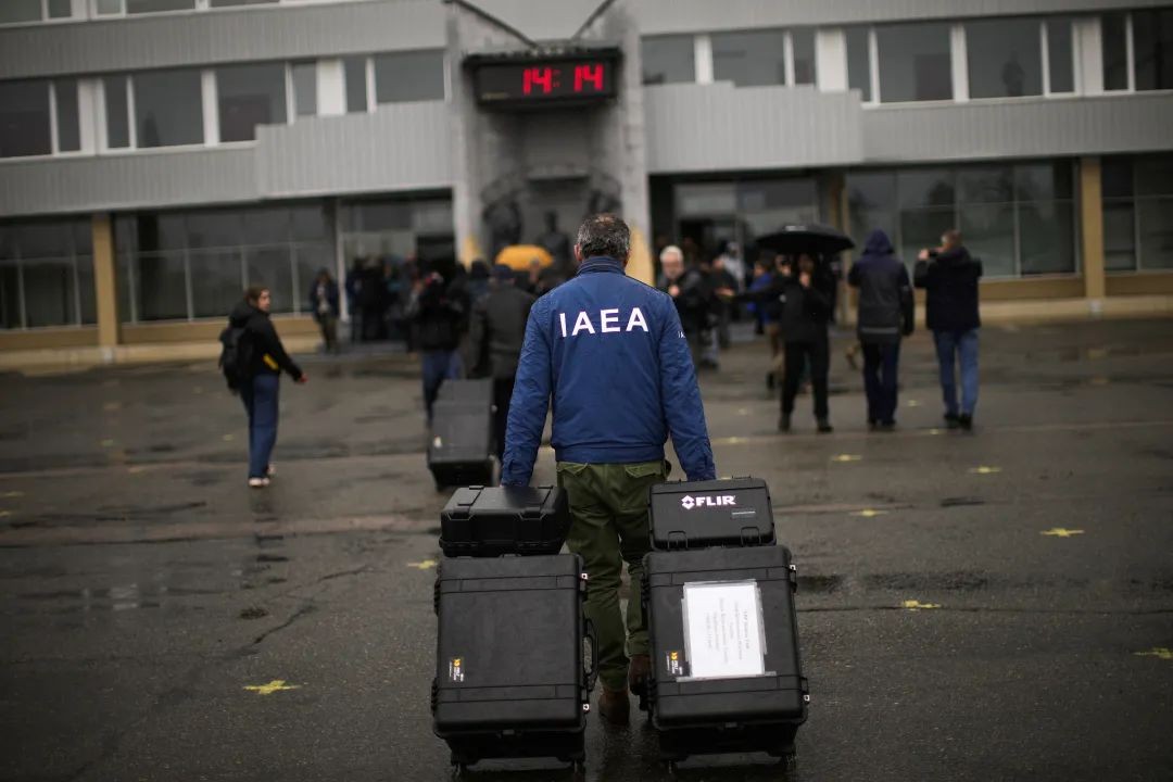 当地时间2022年4月26日,乌克兰切尔诺贝利,国际原子能机构成员进入核电站。