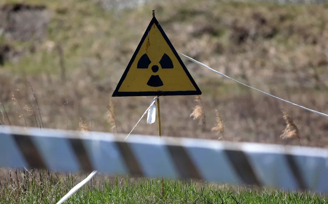 当地时间2022年4月28日,乌克兰切尔诺贝利核电站辐射标志。