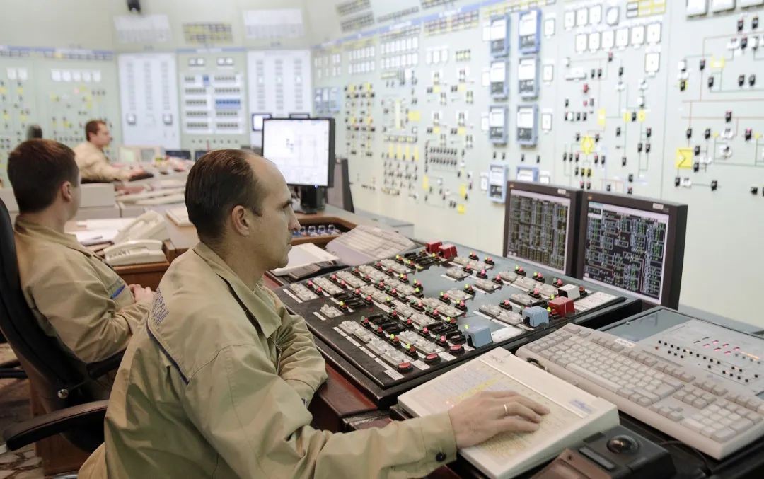 当地时间2015年11月25日,乌克兰尼古拉耶夫州尤日努尔克林斯克镇,南乌克兰核电站。工作人员在二号反应堆控制室工作。