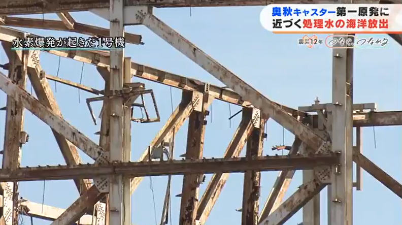 福岛第一核电站1号机组建筑钢筋裸露在外(福岛电视台)