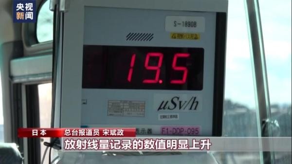 总台报道员 宋斌政:现在是福岛第一核电站1号机组附近,放射线量测量仪数值明显上升,最高时达到每小时30微西弗。