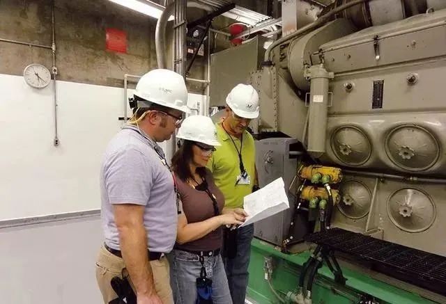 现场检查员对应急发电机的油压调节进行目视检查。(图源:TÜV SÜD)