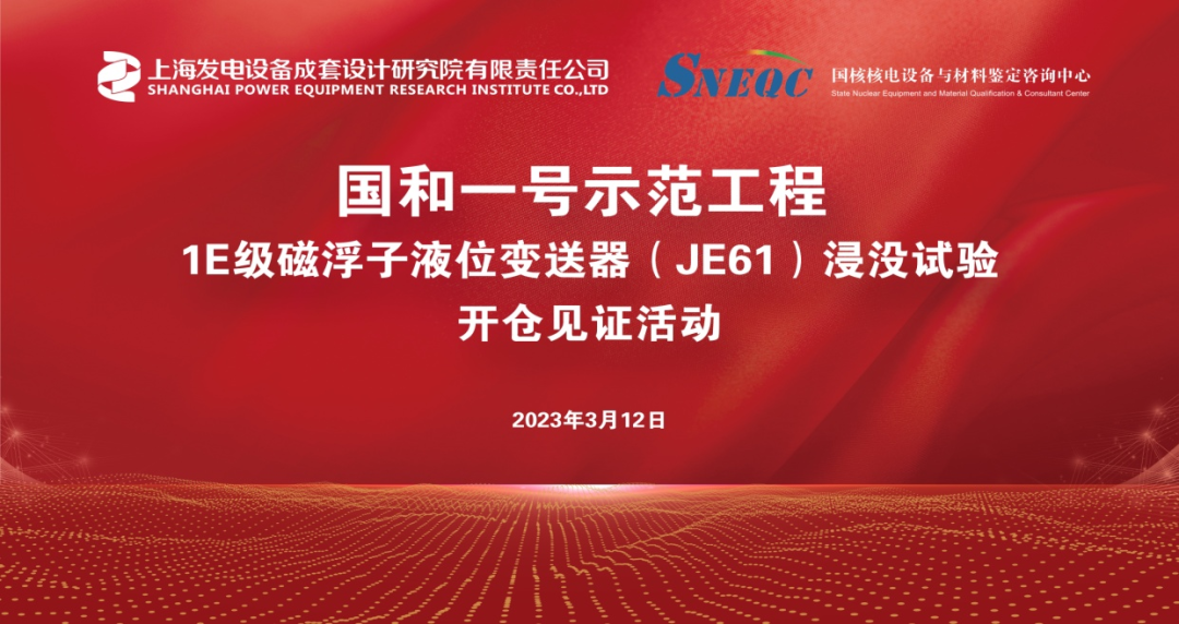 2023年3月12日,上海成套院高质量完成“国和一号”1E级磁浮子液位计浸没试验,标志着历时2年多的1E级磁浮子液位计试验全部完成,为推进国家科技重大专项“国和一号”示范工程建设贡献了技术鉴定力量。
