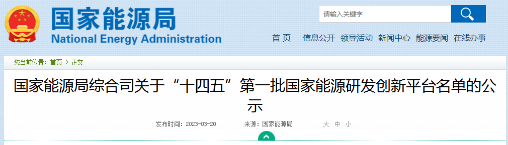 国家能源局综合司关于“十四五”第一批国家能源研发创新平台名单的公示