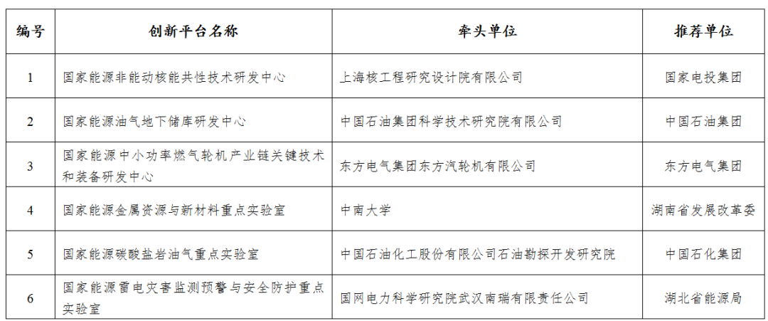 “十四五”第一批国家能源研发创新平台名单(公示稿)