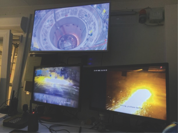在后分割区域,开始将后分割为适合打包的较小片段。同时,开始了切割RPV下一个环段的准备工作。