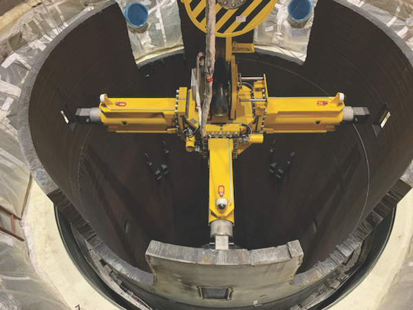 在最终的水平分离切割后,提升梁使用这些装置来提升RPV环段。