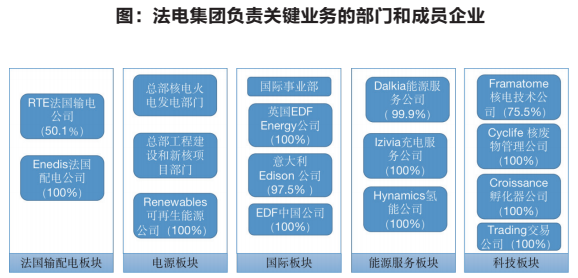 战略决定组织变革,组织支撑战略落地。目前法电负责关键业务的成员企业和部门可以归纳为五大板块,如下图所示。