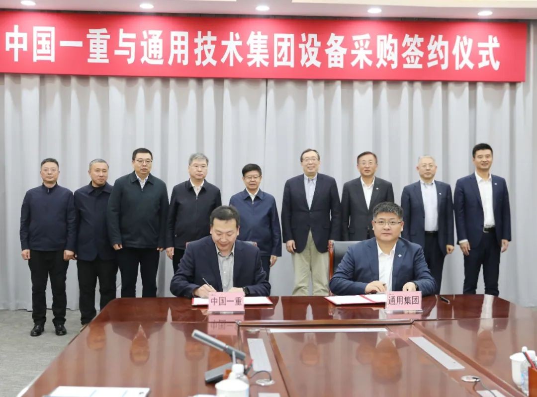 3月22日,中国一重与通用技术集团签署设备采购协议,集团公司党委书记、董事长刘明忠,党委常委、副总经理陆文俊,通用技术集团党组副书记、董事张振戎,总工程师、机床公司董事长、党委书记唐毅共同出席签约仪式。