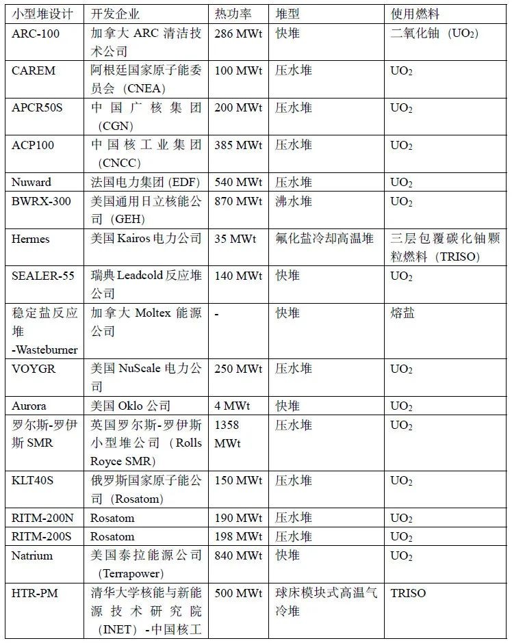 NEA小型堆网站主页仅研究了21种具体的小型堆设计,涉及许可证申请、选址、融资、供应链、人力资源、燃料等6个重要方面。这21种小型堆基本情况如下: