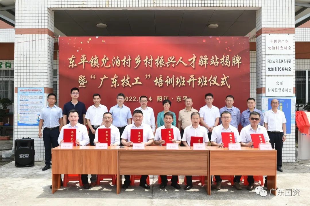 ▲2022年2月15日,8名员工与中国广核集团帮扶创办的阳江允兴环保工程有限公司签订集体劳动合同“一驿站”:乡村振兴人才驿站,开展订单式人才培养和就业帮扶