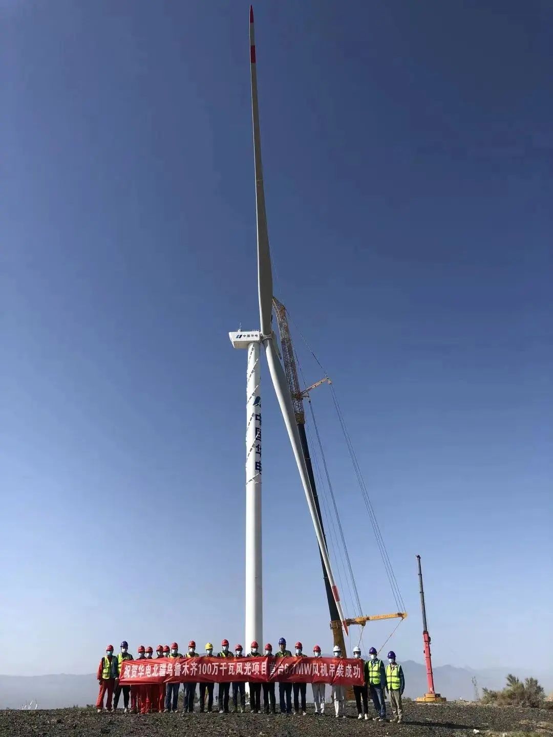 作为国家首批风光大基地项目,该项目位于新疆自治区九大风区之一的达坂城风区,项目采用的6.7兆瓦风机是我国山地风电单机容量之最,轮毂高度110米,相当于40层楼高,叶片长93米,重达28吨。此外,项目建设的220kv升压站也是公司目前承接的最高电压等级升压站。此次并网地块建设发电机组25台,年发电量约4.8亿度,与传统火力发电方式相比,每年可节约标准煤燃烧15.6万吨,减少二氧化碳排放43.7万吨。