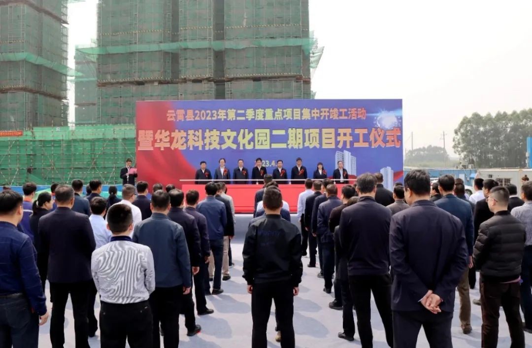 4月2日上午,华龙科技文化园二期项目举行开工仪式,漳州市副市长、市公安局局长肖申华,云霄县委书记蓝良木,云霄县长沈顺来,云霄县人大主任林达祥,云霄县政协主席林意纯以及在家县领导班子成员,漳州能源纪委书记付开龙、漳州科创园发展有限公司总经理朱龙刚以及项目各参建单位代表参加本次开工仪式。