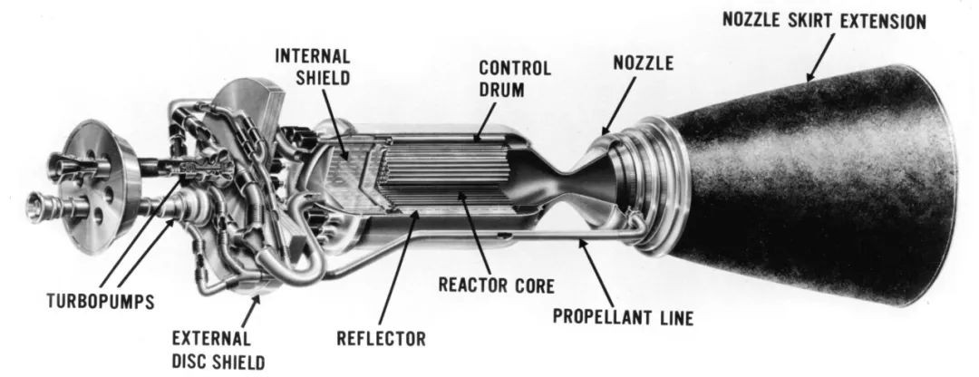 NTP利用裂变产生的热量,通过反应堆芯加热低分子量推进剂(例如氢)来工作。氢气被加热后,在通过喷嘴时的膨胀实际上是NTP系统产生推力的原因。