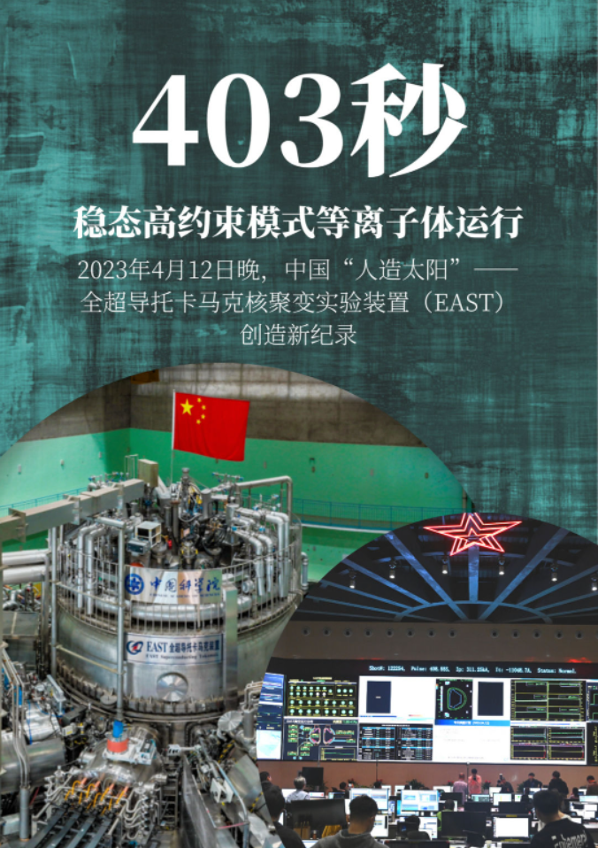 4月12日晚,经过十几年聚力攻关,EAST成功实现稳态高约束模式等离子体运行403秒,刷新2017年的101秒世界纪录,实验现场一片欢腾。