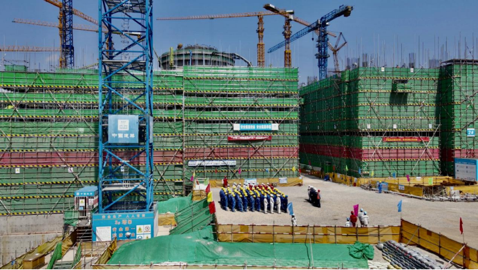 每个工友、每台设备,就像一颗颗螺丝钉、一个个零部件,紧密扣在一起,以钢铁意志、顽强决心和攻坚克难的勇气,创造了70天完成具备汽机运转层结构浇筑条件的“中建速度”,在“华龙一号”核电项目常规岛建设中,是目前用时最短达到浇筑条件的项目,充分展现了团结拼搏的“三澳力量”。今天我们种下了1号机组常规岛汽机运转层结构混凝土的“种子”,他日必将收获核电建设的丰硕果实。