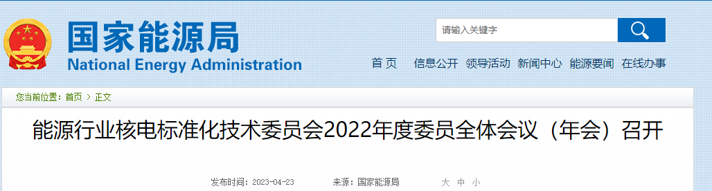 国家能源局4月23日消息,4月17日,能源行业核电标准化技术委员会在京召开2022年度委员全体会议(年会)。会议要求,准确把握核电发展的重要机遇期,坚持自主发展、持续改进、守正创新,坚定不移推进核电标准自主化建设与创新发展。要聚焦核电标准建设关键工作,科学规划布局前瞻性引领性标准,做好做实与核安全相关标准的认可工作,持续推动我国自主核电标准的应用实施。