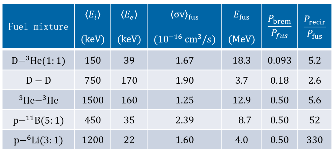 基于氢-硼燃料的核聚变发电站需满足的物理条件要比氘-氚聚变的要苛刻得多。一方面,与氘氚反应相比,氢-硼反应想要达到其最大的核反应截面需要更高的质心动能;另一方面,由于氢-硼反应的轫致辐射造成的辐射损失比氘-氚反应高得多(轫致辐射能量损失与核电荷数的平方成正比),在平衡态下,氢-硼核聚变的轫致辐射损失一般会高于核反应释放的能量,最终导致几乎没有净能量输出[18]。即使利用最新的氢-硼聚变反应截面数据(Sikora在2016年发表了新的截面数据[19],相比Nevins的反应截面有较大幅度提升[20]),氢-硼热核反应也只在很狭窄的能量区间才会有净能量输出[21]。