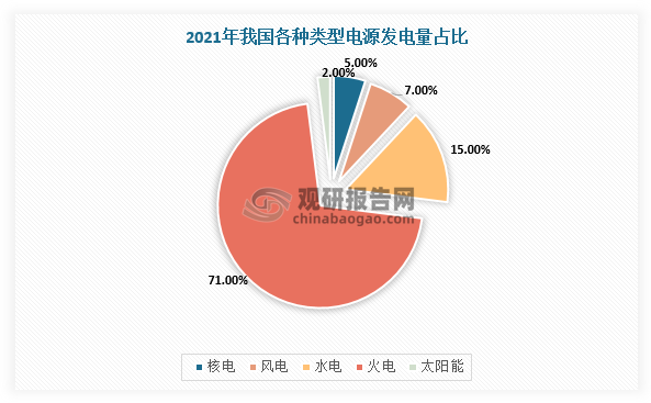 此外,近年来,我国核电发电量占总发电量的比重呈现逐年增加的趋势,由2013年的2.1%增长至2021年的5.0%,但仍低于火电、水电、风电的占比,并且与其他发达国家和发展中国家相比要低。由此可见,我国核电行业渗透率有望进一步提升。