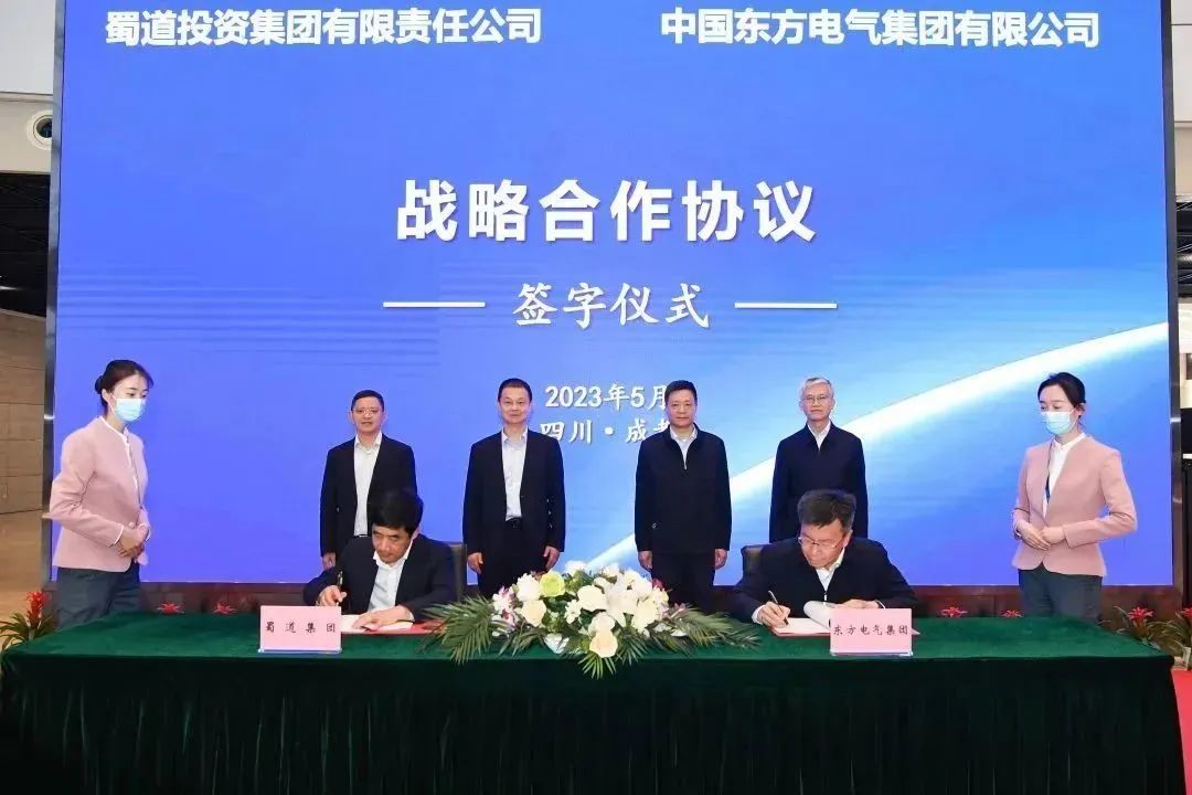 5月10日,中国东方电气集团有限公司与蜀道投资集团有限责任公司在蓉签署战略合作协议。在东方电气集团党组书记、董事长俞培根,党组成员、副总经理张彦军,蜀道集团党委书记、董事长唐勇,副总经理杨如刚的共同见证下,东方电气集团党组成员、副总经理李忠军,蜀道集团副总经理周凤岗分别代表双方签约。