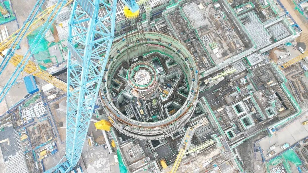 5月14日2时48分,徐大堡核电3号机组堆芯竖井钢筋与止推桁架/钢衬里组合模块顺利吊装就位。