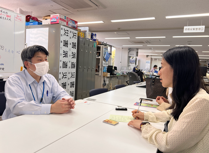 福岛县磐城市危机管理部原子力对策科主任草野浩平(左)接受《环球时报》记者采访。