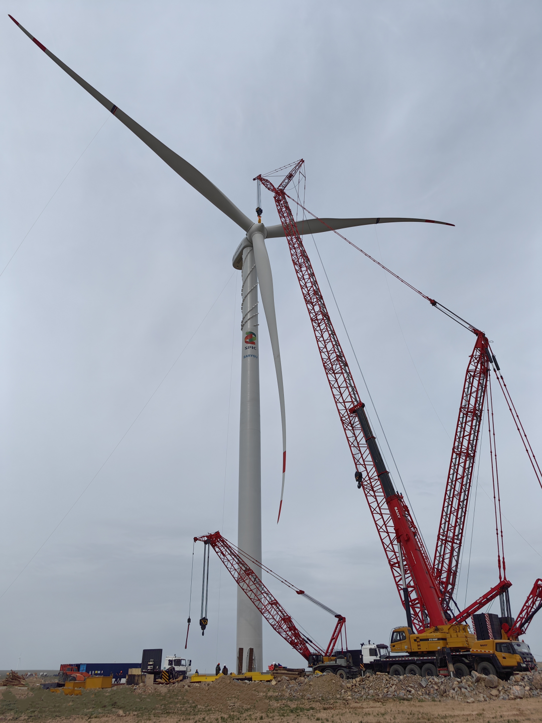 ▲札纳塔斯二期100兆瓦风电项目首台风机完成吊装紧邻一期项目场址,札纳塔斯二期100兆瓦风电项目正在有序推进施工建设,近日,札纳塔斯二期项目完成了首台风机吊装,预计于2023年12月并网发电,每年可增加清洁电能3.4亿千瓦时。