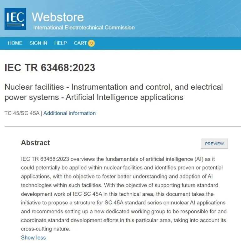 近日,国际电工委员会(IEC)正式发布了由上海核工院主导制定的国际标准《核设施-仪表、控制与电气系统-人工智能应用》(IEC TR 63468:2023)。该标准是IEC在核领域制定的首个人工智能国际标准,也是继2021年主导制定发布我国核电领域首个IEC国际标准之后,公司取得的又一个新突破。