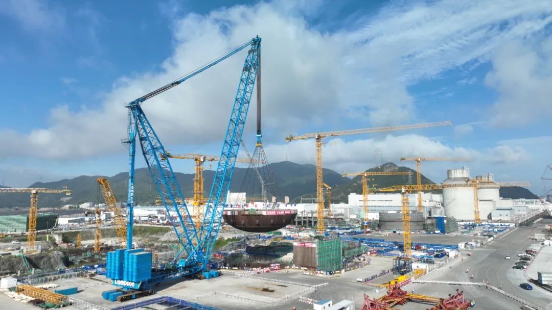 当天上午5时46分,吊装总指挥部下达指令,2600吨吊车开始起吊。经过试吊、起升、回转、落钩等动作,8时58分,安全壳底封头准确就位,整个吊装过程安全受控。