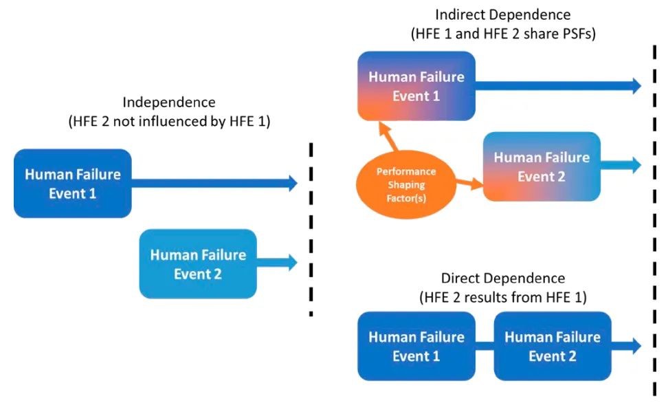 人力可靠性分析中,建模的不同类型依赖关系说明。