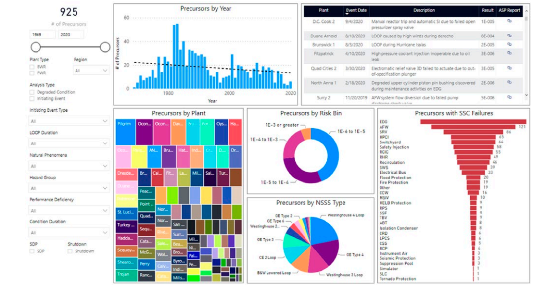 显示核管理委员会事故序列前体计划风险见解的示例仪表盘。