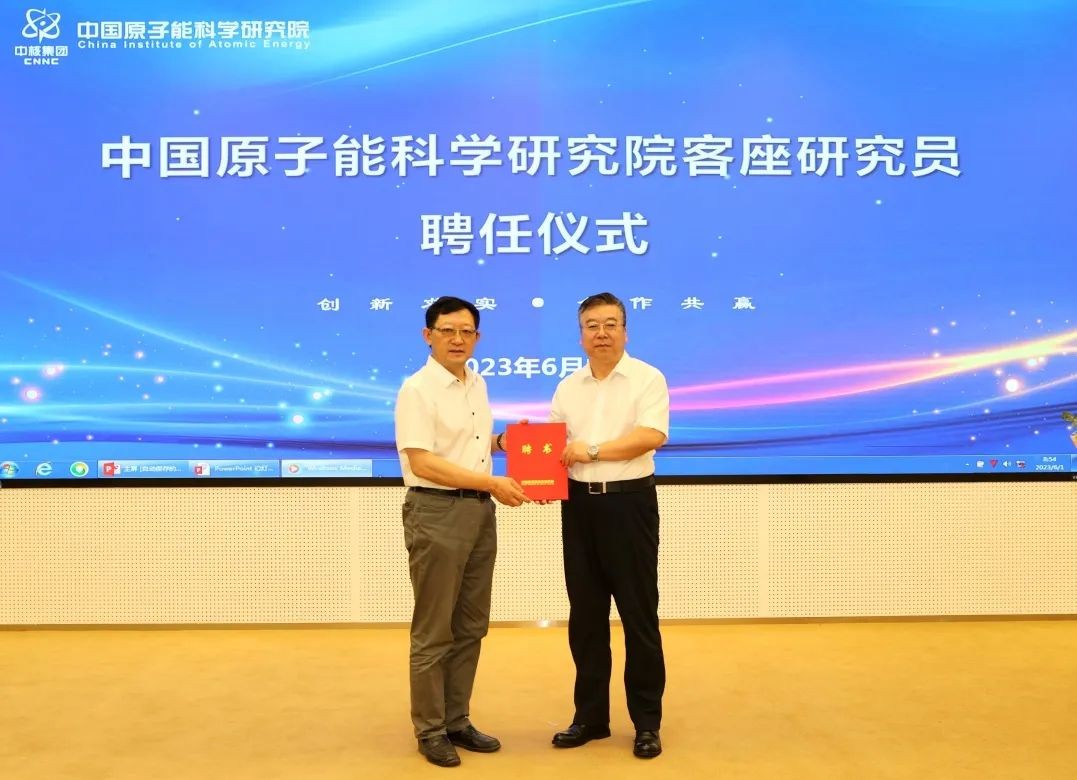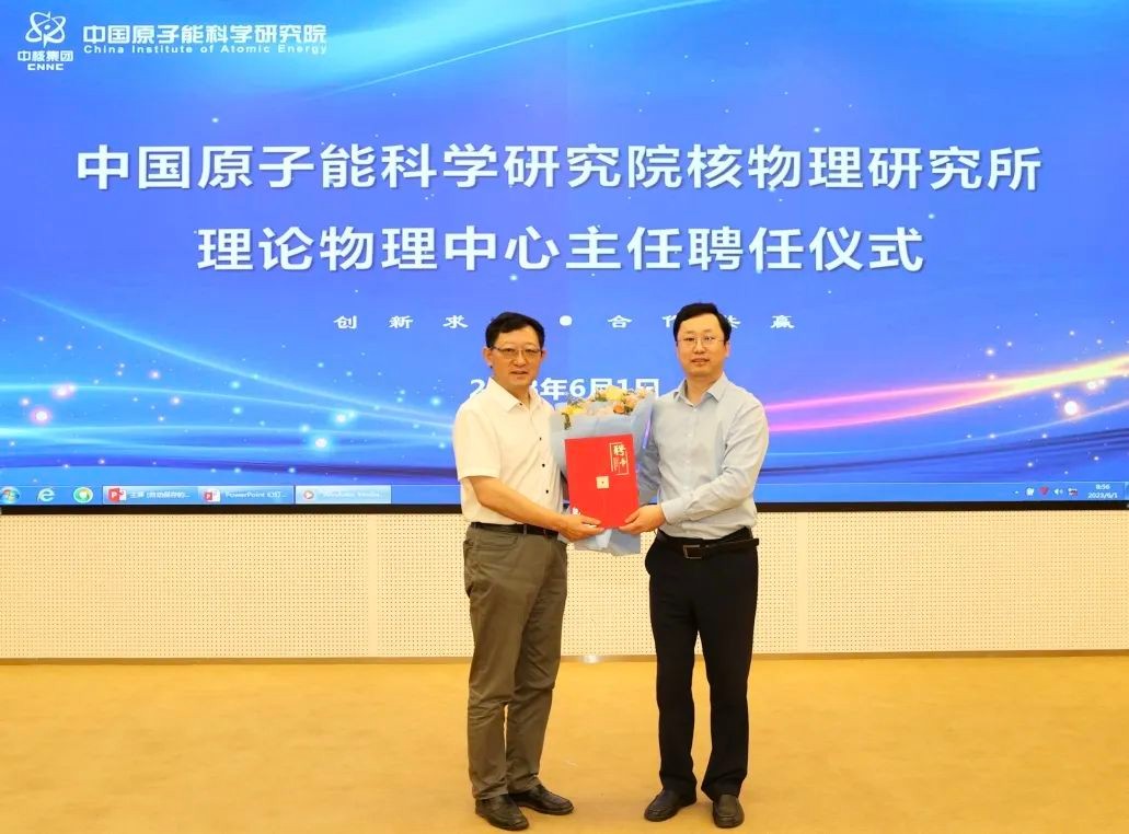 6月1日,原子能院举办仪式聘任孟杰教授为院客座研究员及核物理研究所理论物理中心主任,院党委书记薛小刚为孟杰教授颁发聘书。院人力资源部、核物理研究所相关负责人以及部分青年代表参加仪式。