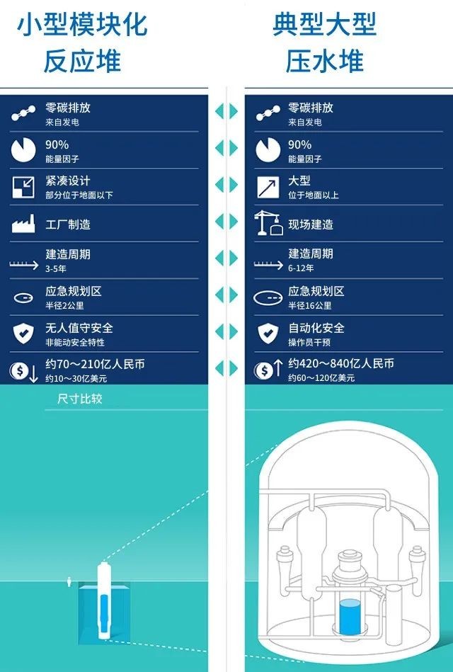 根据小堆开发商的描述,小堆的地理足迹比大型压水堆小,金属密度也更低。据国际能源署(IEA)称,产生每MW电力,核能需要约5吨关键矿物,而海上风电需要15吨,陆上风电需要10吨,太阳能需要6吨。