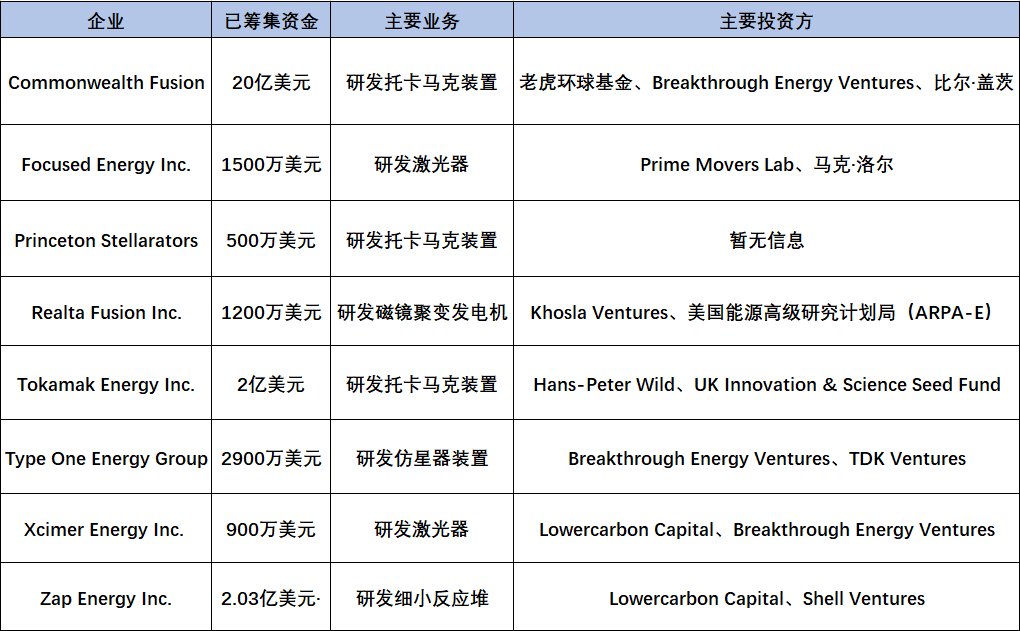 多家行业巨头投资核聚变
